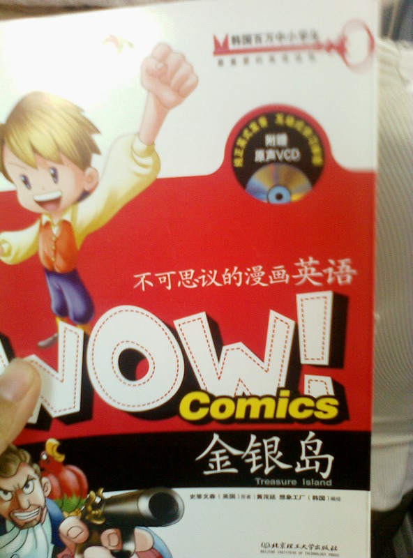 2011年7月6日:《不可思议的漫画英语---金银岛》是上周六到的,因为我休息,豆爸忘记帮带回家了。刚才进办公室,我看见书有点小惊讶,书后还附有VCD,可以让孩子互动学习体验。