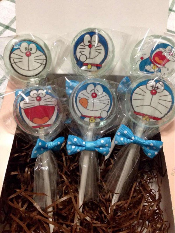 首先,来说说这个糖果的原料吧,我没有亲自做过,所以不知道制作过程,不过大致听那个便宜说起过,还看她自己做的时候烫伤手了呢,真的是纯手工哦,因为没有添加剂,味道还比较好(后来还是吃了),保存不了很久的,过了就不能吃了,不过用来做纪念品不错。 最吸引人的就属棒棒糖上面的图案了。我们平常买的棒棒糖,图案大都是塑料,做法也很简单,只是做的好看用来哄小孩子的,是不能吃的,而且图案只是在包装纸上,而不是糖果本身图案。这个就不一样哦,图案也是自己手工DIY出来的,原料也是糖果,是用糖果做好以后附在棒棒糖上的,特别Q。 那天她送给我的是一个多啦A梦的图案,后来我看她发给我的图片里还有各式各样的,蜡笔小新啊、喜洋洋啦,各种卡通动漫的图案都有,而且做得很逼真。一开始我还以为这些图案是需要买相应的模型,然后再用糖果做出来的,后来发现应该不是的。因为这些糖果的图案不仅可以是这些现成的卡通人物,如果你喜欢的话,还可以自己提供图片,比如说你的自拍照啦、和老公的合影啦,只要照片够清晰,她都可以放到糖果里,做成专属于你的定制糖果 是不是很有意思呢,不过因为附上图片的糖果薄片做法比较复杂,花费的手工也很多,比较难做,这种糖果的价格自然就稍微会贵一点,跟普通大小的糖果一样大,不过也要10多块钱一个呢。单纯用来吃的话有点奢侈了,不过送给朋友作为见面礼还是挺有意义的