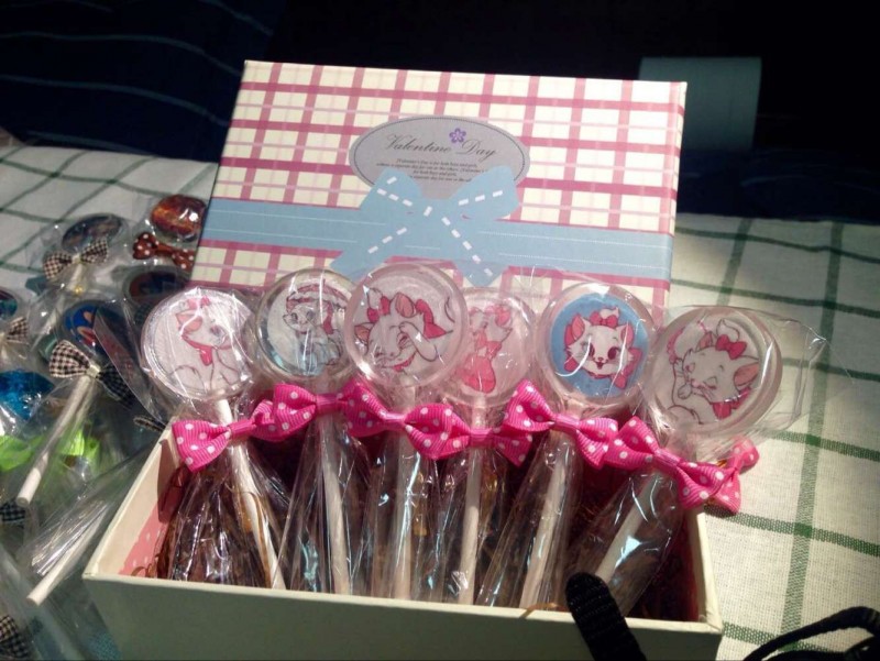 后来才知道她的那个姐姐是个甜品达人呢,手可真是巧啊。那天晚上就看到她在朋友圈里晒图,看到图片原来是棒棒糖啊。不过这个棒棒糖跟我们平常超市里买的可不一样哦,这个可是人家纯手工定制糖果,不说味道如何,看起来就有种萌化了的感觉,似乎都不忍心下口呢。那时候跟这个小姑凉关系还不错,第二天她就送了我一个,一直舍不得吃呢,留着作纪念也很合适呢。