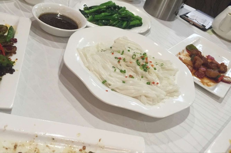 昨天经理就说好了今天中午要请我们吃他们酒店里的招牌手工粉,通过昨天中午的招待,我们都很是期待了。因为他们酒店的菜的确是做得很好吃,每一道菜都有其自己的味道,昨天我们就把上来的所有菜吃了个精光,连米饭都没有剩下一点,最后都是撑着肚子走出餐厅的。