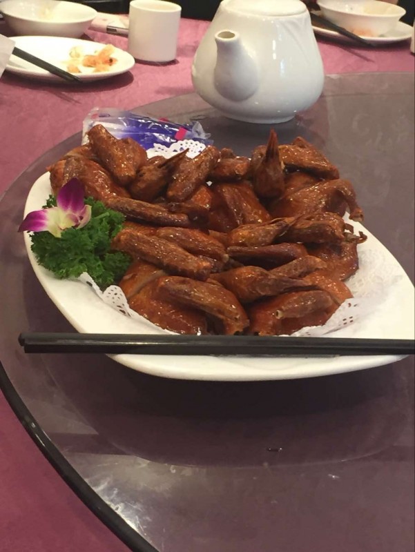 到了酒店的时候已经有好几个客户的人在等着我们了,他们差不多已经把菜都点好了,因为都差不多十二点了,我也的确是有点饿了,在上菜之前先是上了两个小菜。这边酒店的习惯好像是这样,上菜之前大概是为了避免等菜时间显得过长,一般都会先来两道小菜,这样也可以先开开胃。今天先上来的小菜是一叠炒花生和一叠拍黄瓜。花生比较香,挺好吃的,不过上火哦,拍黄瓜味道就查了一点,拍的不够,还没有完全入味,不过我喜欢吃黄瓜,还是挺原滋原味的。