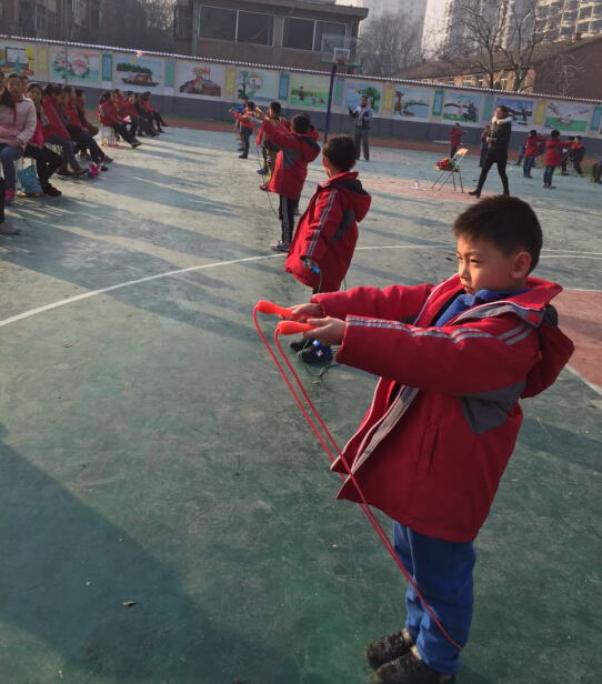 上个月底 牛的学校组织了跳绳和踢毽子比赛,这个比赛应该是以一年级新生为主的,所以每个班的所有同学都上场参加比赛。这也是要普及跳绳 和踢毽子这两项体育运动,希望每个同学都可以学会。 比赛现场家长是看不到的,中午放学回家牛告诉我说下午就要 比赛了,我问他最近天气冷也没有多练习能不能跳到自己的最好水平,有点迟疑的说不知道,反正一分钟一直跳呗。然后我和姥姥分析了他的缺点,如果跳坏后再接着跳的时候不要过于着急,而是要放慢点动作把跳绳再次摆好姿势后再跳。平时练习的时候都是第一次可以连续跳几十个,然后只要坏了一次再跳就跳不了几个了,跳一个坏一个,导致最后的总数没有多大的变化。姥姥还在家里给牛做了示范,别看姥姥那么大年纪了,都还是可以跳几十个 呢。