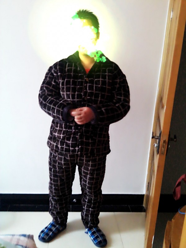 后来想着我们都有了,就打算再给我老公买一套,老公说不用,我还是打算买,让他把我爸那套试一下,看下大小,结果这货说已经试过了。我听了那个无语,这是不要的意思嘛,分明就很想要一套嘛。老公比我爸胖,我就拍了一套3XL的,结果都2天了还没有发货,然后卖家才告诉我我拍的颜色没有大号的了,可不可以换一套,结果换的是咖啡色的,就是颜色比较深,穿着显得有点老气。老公本来就胖,穿着这睡衣更胖,嘿嘿。。。