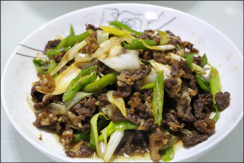 今天晒得晚餐是一片绿色,虽然四道菜有三道有肉,但是也不知道是绿色的菜显得多还是肉炒的颜色比较重,远处看来就是一片绿色,还蛮巧的。其实有猪肉的两道菜还有羊肉的一道菜,我都很爱吃,也是最近特别馋羊肉的缘故。虽然平时我是个懒妈妈,嘻嘻,不好意思啊,但是现在找到了不让自己懒惰的事情。例如做饭的时候打开了手机小说,边听小说边做菜,还蛮轻松的呢。 先说说我的孜然羊肉吧,老公炒的孜然羊肉是不放那些菜的,只炒羊肉。可是我就觉得应该放一点会好看一些,这次先是炒出了羊肉放了孜然粉,然后倒入了提前切好的青椒和葱花。感觉加了青椒和葱花以后,这羊肉的味道反而没那么重了,就连Aric也很爱吃。下次再让老公炒一下不放菜的孜然羊肉,味道估计也不会差。这道菜深受老公和Aric的喜爱,爱吃羊肉的家庭就是这样啊。