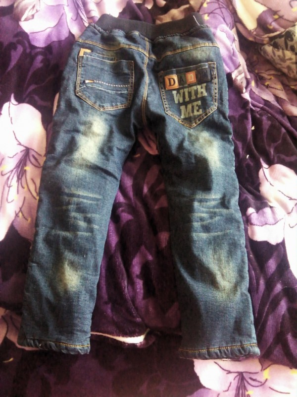 棉裤是牛仔棉裤,男孩子嘛,比较调皮,穿牛仔的棉裤也不容易坏,而且这样的颜色也是比较耐脏的,深色的比较好,省得我妈总要忙着洗衣服。我用手摸了一下,挺柔软的,而且也是加厚的,但看着没有肥肥的感觉,还是挺不错的。量了一下长度,对我儿子而已,稍微长了一点点。