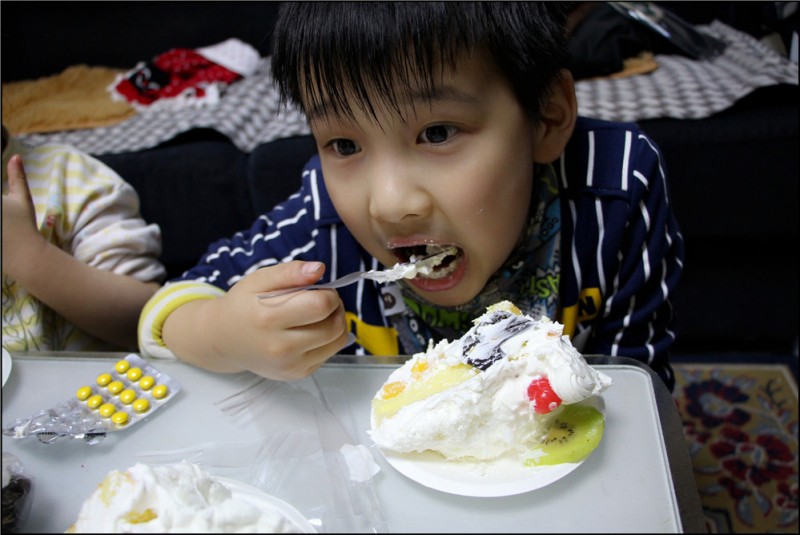 Aric带着妹妹唱着生日歌,与姥爷一起吹蜡烛,我帮忙切了蛋糕,每人一块,沾沾姥爷生日的喜气。Aric还主动抱着姥爷献上了自己的亲吻,当然,你得无视Aric那满脸的鲜奶和故意往姥爷脸上蹭的恶作剧。这个生日虽然只是在家里过,虽然比较简单,但是因为团聚,因为陪伴,因为我们的心里都有亲人,而变得温馨、幸福而又快乐。 ![]() 老弟送给老爸的生日蛋糕。 ![]() Aric同学早已经不自觉的戴上了姥爷的生日帽。 ![]() 老妈做的晚餐,比较简单,但是却特别好吃。 ![]() 必须得晒寿星公喽,就是Aric的亲亲姥爷。 ![]() 好吃的菠菜鸡蛋水饺。 ![]() 美味的鲜肉水饺。 ![]() 一只140多块钱现杀的大公鸡,弱弱的说一句,其实不如母鸡好吃。 ![]() 吃饭中的Aric ![]() 还有老公陪老爸喝点小白酒 ![]() 为姥爷唱生日歌、吹蜡烛 ![]() 哇哦,一口吃下甜甜的蛋糕。 ![]() 搞怪的舅舅把鲜奶抹在了Aric的脸上,然后Aric呢,竟然趁着亲姥爷把奶油全部蹭到了姥爷的脸上,哈哈,坏宝贝。最后祝我家的亲亲老爸,Aric的亲亲姥爷,生日快乐!