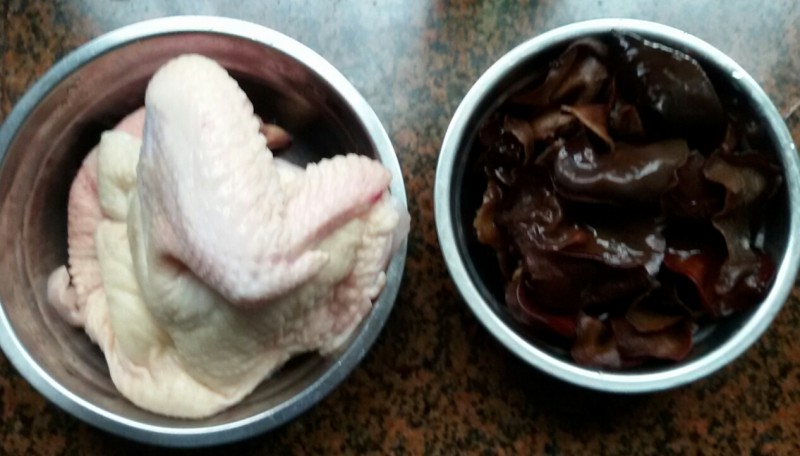 所以我们都非常喜欢吃这些鸡。上次回乡下时,碰到弟妹坐月子,所以我们天天吃鸡。我们回来的那天老爸还专门叫我们带了半只乡下鸡回来呢。 因为我们在乡下时天天吃鸡,所以回来的时候我就把鸡冷冻了。隔了几天后我才拿了一半出来吃,然后用它做了木耳鸡。 材料准备:木耳50克(浸泡撕小块)、鸡肉500克左右(斩块,多脂肪的鸡皮去掉另用)、生姜三片、小葱切段 步聚: 1、锅烧热,加入少量的花生油,然后加入鸡肉块翻炒,炒至变色后加入适量的清水盖上盖锅焖; 2、焖了十五分钟后再加入木耳翻炒,然后盖上锅盖继续焖十分钟; 3、用另一小碗取适量的清水,然后加入适量的生粉、蚝油、酱油、胡椒粉和盐调匀,备用; 4、看到锅内的汤汁收得差不多时就倒入步骤3调好的淀粉水快速翻炒,待汤汁收干后就洒入葱花然后关火起锅。
