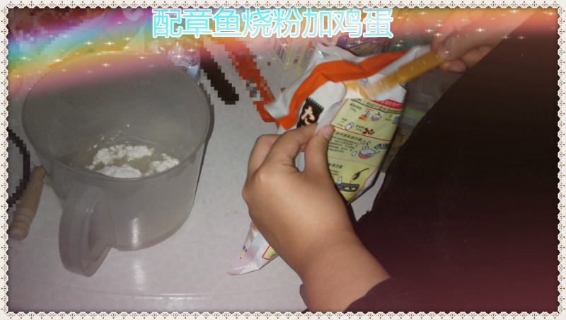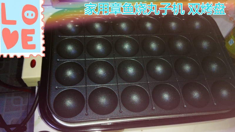 在2015年“双11”狂欢购中,我们家孩子的笑笑姐在淘宝定购了一台迷你的“章鱼小丸子机家用章鱼烧烤盘”,经过好几天的等待,这台小机器终于回来了。随烤盘还购回了章鱼小丸子用的食材:章鱼烧面粉、木鱼花、切丝海苔、蕃茄酱、沙拉酱等。我们一大家三个孩子定在周末晚上来做章鱼小丸子。