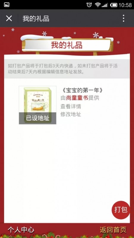 ![]() 对于宝宝地带和各大合作品牌一起在微信上搞的圣诞礼物派送活动,相信地带的亲们已经是在热火朝天的积极参与和转发中,做为地带的老会员,怎么也要去参加了,何况这个参加活动是这么的简单,虽然我的人脉不是那么的强大,不能做到每天有多少的转发量,但我相信有我的好运气呢。而且我也坚信,只有参加了活动,至少才有机会中奖,如果你完全不去参加,那是连一点机会都没有的,所以,对于我来说,那是怎么也要去参加了。 一般来说,在活动的第一天,出奖率肯定是最高的,因为越到后面参与的人是会越来越多的,那么奖项被大家抢的速度也就更快了,而我这次中的第一个实物礼物,也是在第一天的活动中就中的,是尚童童书提供的《宝宝的第一年》,其实大家看名字就知道,应该是和孩子才出生有关系的,说实在话,当时心里还是觉得有点意外,毕竟我家小子已经6岁了,不知道这个到底有没有用呢,据说还是还好的一本书呢 我是前两天看见可以打包的,显示打包的东西会在3天后发出来的,就不用等着活动结束了再发,所以我就干脆先打包了,提前发要好一点,如果等到活动结束了再统一来发,估计等的时间就要长得多了。 ![]() 没想到今天中午就收到了,刚刚下去取快递时还以为是试读的书来了,打开一看才知道竟然是这圣诞礼物提前到来了,出版社很贴心的先在里面用专门大信封放的书,外面再用快递包裹裹上的,这样保证避免被暴力快递整烂了,很贴心的出版社。 一打开就看到还有咱们宝宝地带工作人员的祝贺信呢,很意外,也很贴心,感谢宝宝地带所有工作人员的辛苦付出。 ![]() 当我打开书时真的惊呆了,很惊喜,书的封面是硬壳包装的,这样便于保管 ![]() 里面的每一页都很详细和精彩,真的是如书上写的,爱的纪念册,从妈妈怀孕最开始就记录着,第一次的胎动,第一次的踢妈妈的感觉 ![]() 宝宝的出生时间,医院,体重,身高等等,都可以自己详细的记录下来 ![]() 还可以在这本书上留下宝宝的小手印和小脚印,好特别的记录,这让我想我家小子小时都忘记给他留下这些印迹了,现在想想,真是那么一丝遗憾的,那么可爱的小手,小脚,怎么没记得留下印迹呢。 ![]() 从宝宝一个月开始,每个月都可以拍照,留下他们成长的点点滴滴,看看每个月是不是有没有什么变化,直到一岁了。这本书也就是让家长可以自己记录宝宝从在妈妈肚子里,到出生一岁的一些小故事,很特别,也很精彩 ![]() 虽说现在活动上低分兑换的东西已经抢完了,但还是要坚持每天的转发,直到活动结束为止,说不定万一还可以中大奖呢,至少是要有始有终吧。所以,没有中奖的亲也不要灰心,坚持就有机会的。 本作品未经作者许可不得转载,转载请征求作者意见。擅自转载使用,将保留追究其法律责任的权利!