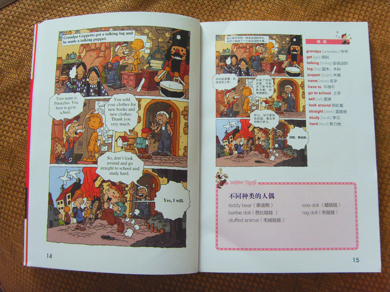 虽然等待的日子总是漫长,但是不过才三天就收到包裹了,赶紧打开一看,是《小木偶奇遇记》,很经典的故事,也是大家比较熟悉的一个故事,不过这个故事我还没从来没跟嘟嘟讲过,想想,真不错,嘟嘟又可以听新故事啦。 精致的封面和精美的插图,图文并茂,连我自己都情不自禁地开始读了,我的英文早就还给老师了,还好有中英文对比,左边是英文,右边是中文,出版社真的是考虑得非常周到。翻到最后,还有VCD光盘,哈哈,真是有声又有色,看来我可以先偷下懒,让嘟嘟自己先看碟片,然后再看书。 回到家赶紧拿出本,嘟嘟一见就乐坏啦,连说:妈妈讲,我要听你讲故事。我拿出光盘放在DVD里面,嘟嘟盯着屏幕就不肯走开了,可惜才不过十分钟,小家伙就没了兴致,原来光盘讲的是英文,听不懂就不愿再看下去了,又拿起书让我给他讲。厚厚一本说好每次讲一节,然后他就开始自己一页一页地翻,翻到最后像发现新大陆一样,原来是最后的《跳格子游戏》,虽然现在他是看不懂上面的文字,但是对于那些格子很是喜欢,不停地说:妈妈,这是火车路线。然后拿出自己的小汽车在上面开起来,看他兴致勃勃的高兴样,看来是用不着我这个妈妈继续讲了。 最后提醒嘟嘟,一定要好好爱惜书本,现在嘟嘟还没开始学英语,等学习了英语以后,他一定会更加喜欢这本《小木偶奇遇记》,喜欢随带的光盘了,边听边看边学习,我现在就能想象到那时候的情景啦。 ↓精美的封面,用手轻轻一摸,还很有质感呢。 ↓翻开第一页,右下角有“宝宝地带”的小印章 ↓前面有主要人物介绍,很细心 ↓简单介绍“关于英语学习的误解和真相”和“提高英语水平的秘籍”,学习了 ↓翻开里面,中英文对照,很细心 ↓粘在最后的光盘 ↓嘟嘟自己看得很认真 ↓发现最后的“跳格子游戏”,当跑道玩起小车了 本作品未经作者许可不得转载,转载请征求作者意见。擅自转载使用,将保留追究其法律责任的权利! 评分记录