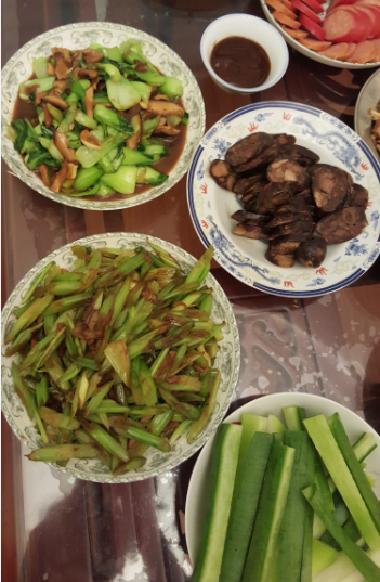 人多力量大,大家一起下手帮忙择菜什么的晚饭开始的还算是比较的早哦,我在饭菜还没有开动之前抓紧时间拍了几张照片啊,不然这样美味的菜一会儿功夫就会被大家吃光的!先来说说这张图吧!左上角黑乎乎的那就是我们这里最为经典的灌肠了!别看它颜色不咋滴,但是味道是绝对的一流啊!逢年必备啊!右下角的就是酱牛肉了,哇,这次的酱牛肉是婶婶买过来的,59元一斤啊,不愧是好东西啊,吃起来口感是真的好啊,这不我家小子这从来不吃的主儿也愣是吃了好几块啊,冬天吃点儿牛羊肉是真的不错哦!哦,这次的鸡爪味道也不错的哦,平日里我是最闲它啰嗦的,都不怎么吃的,但是昨儿因为要喝酒、聊天,我还不知不觉的吃了两个哦! ![]() 看我切的大红肠和蒜包肠美不美?如果中间能够摆上一个小小的桔子亦或是绿色的小叶子就更美了哦!这猪头肉啊,猪脸啊都是我的喜爱,加之用葱丝一拌,哟,但是吃葱丝味道也是杠杠滴! ![]() 这里面当然就是青菜喽!阿姨炒的小油菜味道好,香菇油菜很有名的喽!但是这油菜距离我有点儿远了,又不能够站起来吃,所以我吃的蛮多的还是这芹菜炒肉 ,芹菜本就是我的最爱,这炒的好吃了我是更加的忍不住咯!这一大盆的芹菜是我切的,当时我还想,芹菜是不是有点儿特多了 啊,吃不完不得剩下啊,殊不知芹菜早早的就被吃光光喽!这最下面的就是潍县萝卜喽!也算是我们这里某一地的特色食材吧!它跟我们平日里吃到的水萝卜性质不大一样,更主要的是它的食用方法是生吃,就是这样切成条,蘸取甜面酱即可哦! ![]() 这不我抓紧时间又来了一张“全家福”,我刚刚欣赏完美图,臭小子在屋里就醒来了,更确切的说:是被调皮的哥哥姐姐给吵醒了哦!好来!醒了就醒来了,一起玩玩吧!阿姨后来又做了几个菜然后就开席喽!孩子们最最喜欢的就是凉拌土豆丝啊,真的是好好吃!我家小子喜欢到每口被吃土豆丝了 吃吧,多吃才能长大个子!![]() 对于我这个不经常喝酒的人来说,喝这么一次还真是得好好的消化消化呢,这不早上起床的时候没怎么有感觉,一路上吹着冷风来到这里才觉出我的天啊,头还是有点儿晕晕的,胃里感觉还是有酒气哦!超级不喜欢这样的感觉啊,好嘛,那就抓紧时间冲了一杯咖啡,嗯嗯,这一杯下去算是好了些啊!接着我的活动强大一加大,哟,这劲头又上来了,不行,我还是再喝点儿儿子的营养快线啊,好歹这里面也有点儿酸甜的滋味,希望能够尽快的抵去这酒味哦!以后还真是得收着点儿了! 本作品未经作者许可不得转载,转载请征求作者意见。擅自转载使用,将保留追究其法律责任的权利! 评分记录