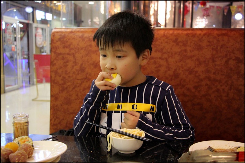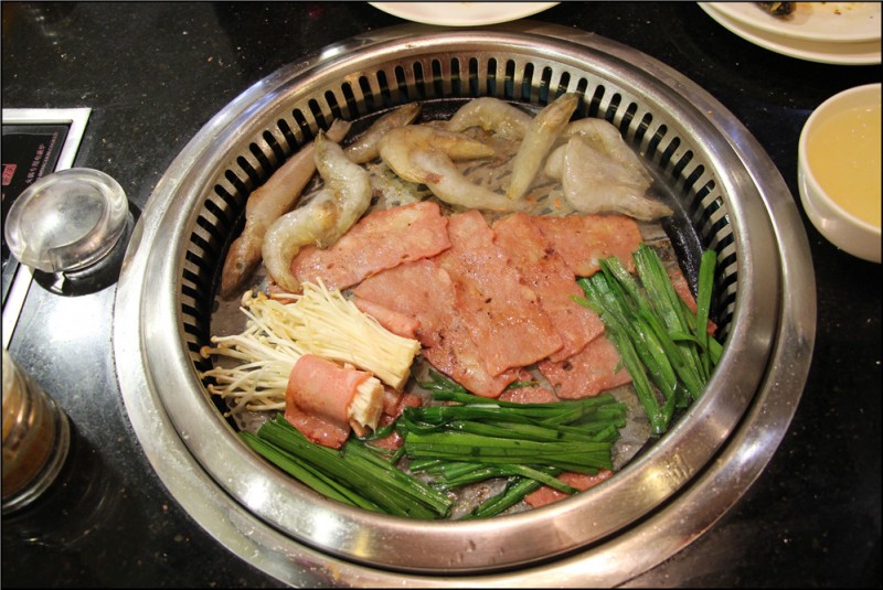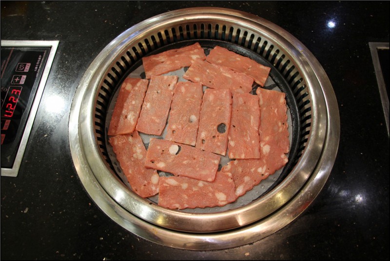 这回Aric去吃自助烧烤可是真真的要收费了。当妈妈的总是很矛盾,以前Aric小,个头不高,去哪儿都不用收费,而偏偏现在的Aric正处于一个很尴尬的身高阶段,一米25的身高,刚好是在收费的标准线上面,跑都跑不掉。决定去吃自助烧烤是因为我馋肉了,虽然生活中也不缺肉,但是女人嘛,总有那么一点儿的嗜好,我的嗜好就是吃烤肉。到了餐厅,Aric就被要求站在身高线上,很无语的接受了Aric需要买半价票的现实,心里吐槽,宝贝你长的这么快干嘛啊。 去的这家餐厅是我们常去的,但是也有一段时间不去了,因为那里有了很大的改变。我爱喝的红酒没有了,我们爱吃的那些菜品也没有了,剩下的就是一些很普通的菜,一点儿也不实惠。但是为了让Aric在这附近的儿童游乐城玩,才不得已的继续在这家吃饭,价格依然比较贵,口味依然慢慢在下降。不过心里还是有所期待,我爱吃的烤肉,也就是培根肉应该改变不大的吧。可惜往往事与愿违,你越喜欢什么,人家越给你改变点什么,总之会让你败兴而归。