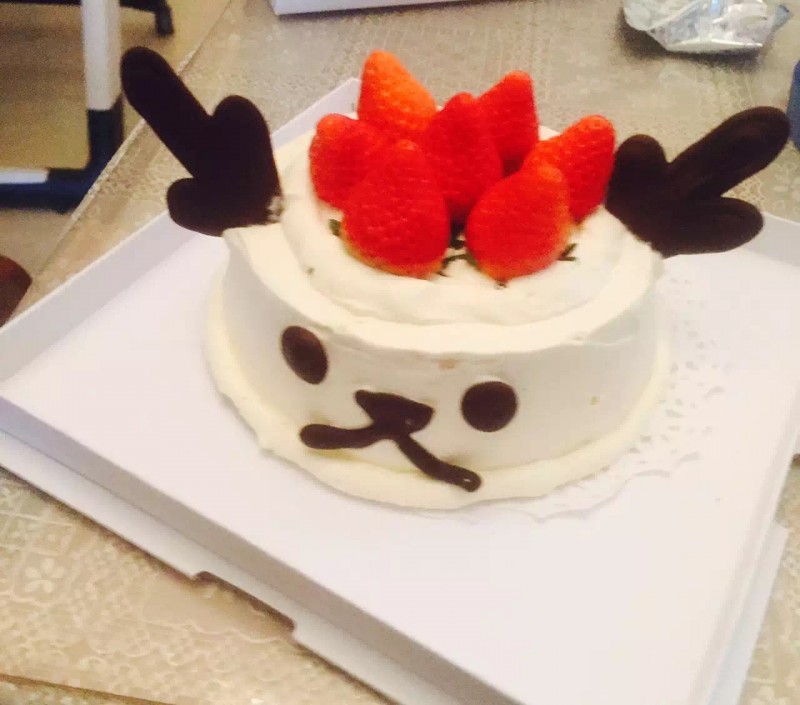 第二天做的小鹿蛋糕,在蛋糕上面还有小鹿的鹿角,鹿角也是用巧克力做成的,看起来很像呢,蛋糕上面有一个笑脸,真可爱哦,在里面也是巧克力夹心。