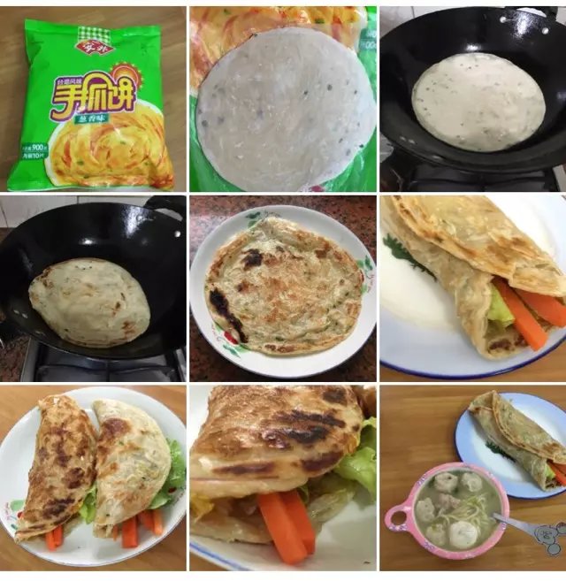 ![]() 12月27日|周日 美食记录 下雨天,太闹心了,守着电视看肥皂剧,出不了门,继续折腾厨房,周日就是个煮妇的日子。由于下着雨没办法出去买菜,就着冰箱里仅有的一些面条做个简易午餐。这种面条是菜市场上买的,貌似是加了碱的,说不上来是什么品种的面条,我们买来的煮法都是用卤的,煮好后是非常浓稠的面条。 ![]() ![]() 今天的午餐就是面条搭配手抓饼,后面追加了一份煎饺。面条用的是前天晚上的小肠汤,加了鱼丸、生菜一起煮。由于面条的量有点少,担心不够我们4个人吃,所以我加了很多水,煮得稀一些。再弄个手抓饼、煎饺就是简易的午餐了。煎饺是买的速冻饺子,考虑到这速冻的时间有点长,直接用来煎不易熟,所以我的做法是先上蒸锅蒸熟了,晾凉后,再下锅煎,下手太重了点,有点焦了! ![]() 前段时间在咱们地带看到有宝妈做的手抓饼,要知道这手抓饼可是我的最爱啊!平时在外面买的小摆摊的,打着台湾手抓饼的名义一个要4元起价,另加鸡蛋1元,香肠2元,鸡排3元……这手抓饼是不是台湾独有,有待考查。但这味道确实让我大爱哈!一想到就馋虫来了,于是冬至那天去超市买汤圆时,就顺手抓了一包回来,10张一包,16元。没办法,咱不懂得做面食的,想吃只好去买做好的回来加工哈!第一次购买,也不知道好不好做,这次煮面条,想说包几个来试试吧! ![]() 手抓饼袋里附有一张说明书,看着做法还是蛮简单的哈!家里也没有什么其他的菜了,只有一根胡萝卜、一根玉米小香肠,生菜,还有少许芋头,就着这些做手抓饼的馅了。胡萝卜先用热水焯熟,香肠、芋头热了一下;番茄酱也只有一小包迷你版的,没有沙拉酱和蚝油,就着千岛酱将就一下了。才发现,想要煮一餐美味,这配料也很关键啊!没有事先准备,全部是就着家中有的材料做了! 简单说说手抓饼的做法: 1、锅烧热后,不放油,不放盐,直接把手抓饼铺好,两面翻至手抓饼膨胀 2、注意控制火候,不要烤焦了哈,手抓饼煎至金黄,脆脆的,像千层饼了 3、加入馅料,卷好、包好就可以吃啦(PS:说明书里面还有个做法是煎个鸡蛋,再加一根香蕉,这样包着就成了香蕉手抓饼,下回也来试试) 本作品未经作者许可不得转载,转载请征求作者意见。擅自转载使用,将保留追究其法律责任的权利! 个性签名