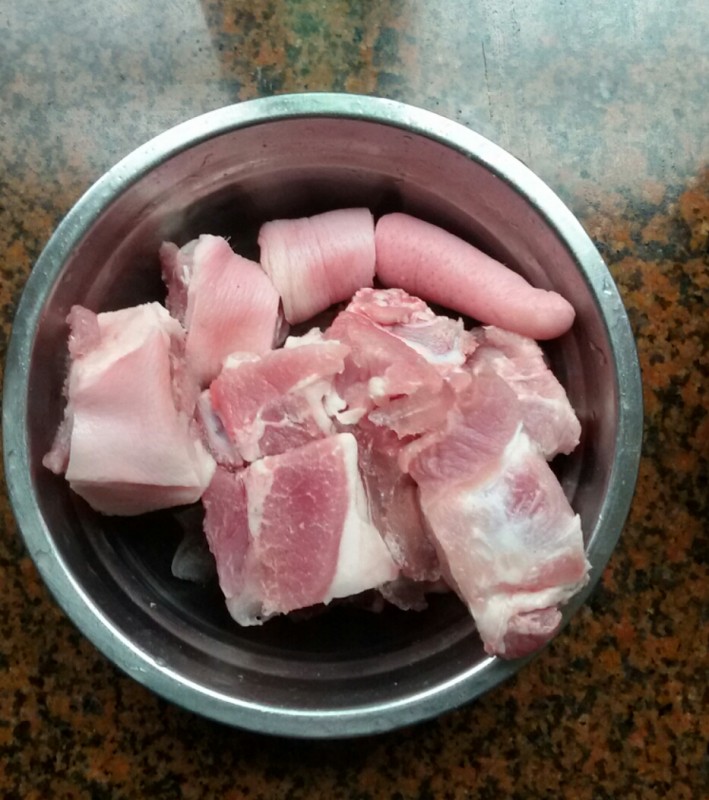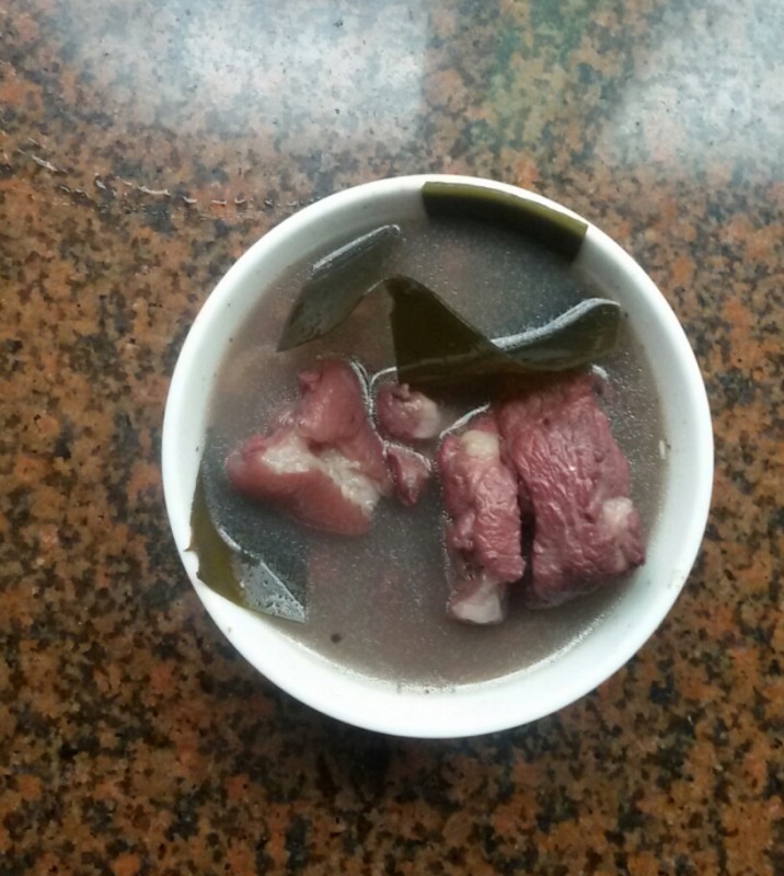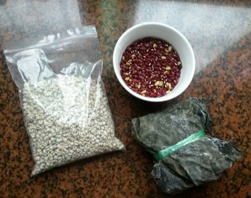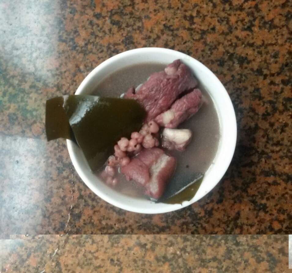 自从我听了罗大伦老师说赤小豆有祛湿减肥美容补血清热等功效后,我就开始喜欢上了食用赤小豆了,平时不是用来煲粥,就是用来煲汤,是属于超级喜欢食用赤小豆的那种人。加上我们这几年用的赤小豆都是从乡下拿回来的,是勤劳的公公婆婆种的,然后我们就食用得更加放心了。 海带性寒,入肝、胃、肾三经,有祛脂降压、止咳平喘、润肤护发、清热等功效。 听说猪尾骨有补腰力,益骨髓,促进骨骼发育的功效,所以今天我就买来了猪尾骨来煲海带赤小豆薏米汤(因赤小豆与薏米一起搭配,其祛湿美容的效果更好,所以我还是忍不住加了薏米进去一起煲汤)。