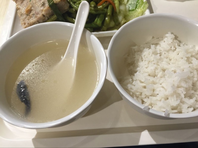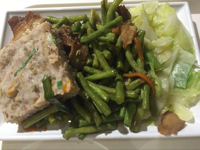 ![]() 套餐一般都是标配的,三菜一汤,一个青菜是统一的,每个人都是一样的,然后就自己点两个荤菜,荤菜每天都种类会不一样,不过吃久了就容易吃到重复的菜了,然后就是例汤了,另外,还会有一个小水果,水果可能会是橘子、香蕉或者梨子之类的,根据不同的季节水果会不一样。如果是夏天的话,可能还会有一小杯子的龟苓膏,冬天就不会有了,用来解暑用的。总的来说还是不错的,而且因为是免费的嘛,我们在公司的话肯定都是来这里吃饭的了。 今天我的青菜是包菜,然后我点了一个梅菜蒸肉饼,一个豆角炒五花肉,这些菜应该是食堂大锅菜,不像小炒那样清爽了,卖相自然也没有那么的好,不过味道还是可以的,只是吃久了的话可能会腻。我有段时间就不喜欢吃,而是每天都去吃面食。这里的面食也是不错的,而且速度很快,不愧是快餐啦。 这些菜如果没有怀孕的话还是很不错的,不过对于已经怀孕的我来说可能就有点营养不好了,不过还好的是我只是在这里吃中午而已,晚上还是回家吃,所以也不会有太大的影响,这里的菜也不是特别的差了。