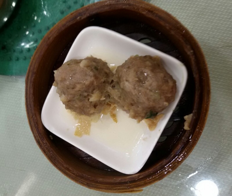 牛仔排看起来虽然很诱人的样子,但我觉得它有点油腻,不过,它的配菜香芋还是蛮好吃的,牛仔排的精华都在芋头里面了,可惜的是芋头的分量太少了,吃得不过瘾。虽然分量少了点,但我还是留了两三块香芋给小不点吃。 就这样,我们三个人只点了五笼食物,宝爸和小不点是吃饱了,可胃口大的我却还没有吃饱,然后宝爸就帮我点了一个牛肉丸。可三个大牛肉丸我吃不完,幸好宝爸帮我吃了一个,否则得撑扁我。