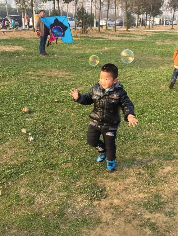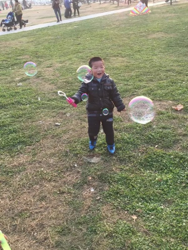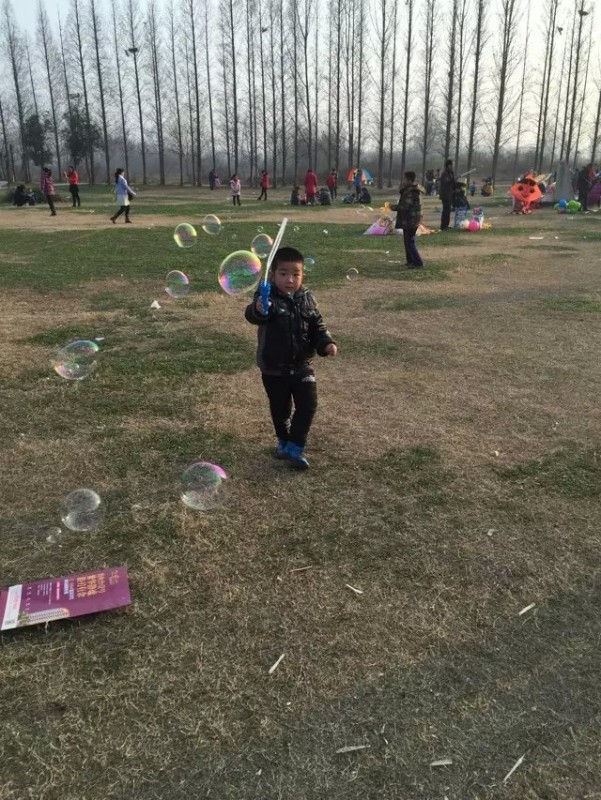 那段区域附近也有很多游乐设施,地方非常开阔,空气非常好。还有篮球场和足球场。小家伙自然也是非常喜欢在那里玩的。那些游乐设施基本上都玩过了,我和老公直接绕小路走向河边,小家伙也紧紧跟随,一路跟个小马驹似的,很是开心。今天天气不错,在河上泛舟的人很多,周围河岸上也到处都是游玩的人们。还有几个拍婚纱照的。 ![]() 我们在木桥上玩了好久小家伙才肯跟着我们继续沿着河岸往南走。可能是跑得太累了,一个劲儿地要妈妈抱呢,小家伙现在快四十斤了,我真是抱不动了呢。我说背吧,背了没多远小家伙又开始疯起来。因为宝爸走得太快了,我就想了个法子,说让爸爸定住我们走。宝爸也非常配合,故意摆出非常滑稽的动作定在那里一动不动,小家伙觉得好玩极了,不停地叫爸爸定住。 ![]() 就这样不知不觉地走了好远,来到一处草地,有很多卖小玩具的和玩耍的小孩子们。老公有意要给小家伙买个风筝玩,小家伙却最中意泡泡。于是给他买了瓶最大的泡泡。小家伙玩得开心得不得了,一直玩到差不多快五点才肯回家。 ![]() ![]()