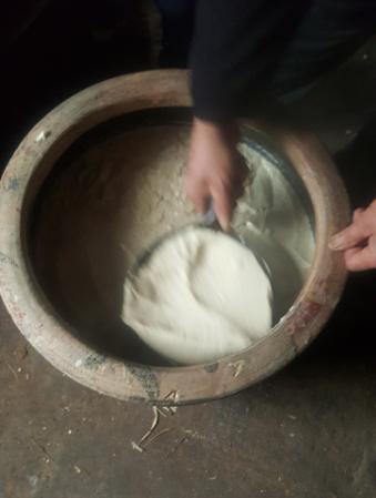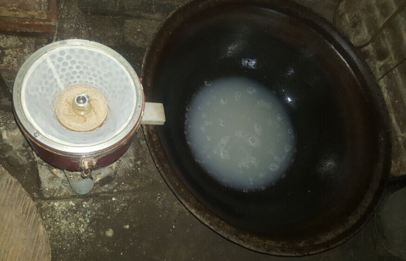 我带着他来到厨房,大姨夫说豆汁已经点好了石膏了正闷着来,过会儿就成为这豆腐脑了!好来那我们就期待着哦,一会儿豆腐脑成型了,大姨夫给我们舀出来三碗要我们喝,同时还盛出了一大盆的豆腐脑说是要我带回婆家让他们都吃尝尝,老公这个人是最爱豆腐脑的,这么正宗的豆腐脑还真是第一次吃到哦,不停的称赞啊! ![]() 这不姨夫把豆腐脑给我们盛出来之后就开始往豆腐梯中舀,这软和和白花花的豆腐脑子真的是让人流口水啊,好看好喝哦! ![]() 满满的一大屉子哦!接着姨夫又用了一根筷子来回的划开,这是干什么来,就是为了排除里面的空气哦,这样做出来的豆腐是更加的细腻哦!不错不错,老手就是一步也不会错过哦! ![]() 好了,接着就是要把湿的龙布包裹来哦,要使劲的拉过来然后拉平铺开,这样做出的豆腐上才不至于有一道道的纹理哦!我感觉新手的话一定会拉不平的吧! ![]() 拉平后放上一个平板,接着在中心处压上大石头,老公就问了:为什么要压石头呢,姨夫说:因为豆腐中的水分过多啊,只有把多余的水分压出才能成为豆腐啊!嗯嗯,别管说话了,快点儿帮忙搬石头吧!谁知姨夫说:不行,不行!这活儿都是我一个人从头到尾的干的,别人干我琢磨不好,怕有差池哦!哦,原来是这样啊! ![]() 好了,终于算是压好了,姨夫说这也算是完工了!因为剩下的4--5个小时里不用管了,只管压着就行,我用箭头指出的这就是市场上可以见到的盛豆腐的工具哦! ![]() 老公还是一头的雾水呢,到底是怎么做成的来?嘿嘿,以我多次观察的经验来告诉你把!首先就是将这黄豆泡发12个小时以上才能够真正的发好使用的哦! ![]() 接着豆子挖入磨豆机中磨成豆汁,然后豆汁倒入锅中大火烧开,盛入小杠中,快速搅拌,这个过程不能够懈怠哦!因为豆浆表皮形成的皮就是:腐竹哦!但是一旦豆腐中被撤走了这几张皮子的话,豆腐也不会有劲了哦!所以一定要快,不能紧住皮哦! ![]() 我们在屋里谈的津津有味来,再来到院子里听听这设么动静呢,哦!我家小子也!他看到这扁担后,好奇的不得了啊,一个劲儿的观察着该怎么玩,宝儿爸爸说:来,我给你放到肩头,这是跳东西用的,叫做扁担!这东东现在着实不多见了哦!来到大姨家这一圈人家爷儿俩算是收获多多吧! ![]() 小子真是个有福气的娃儿,这不刚自己玩了一会儿,表姐带着外甥也去了,巧的是他还带着小鞭炮,小子立马跑过去说:哥哥,我们一起玩吧!他就跟个小跟屁虫是的跟着哥哥不停地跑啊,这次哥哥带的小鞭炮动静还挺大来,不过小子竟然不害怕,还兴奋的不得来了!真是好男儿啊!玩的不错! 本作品未经作者许可不得转载,转载请征求作者意见。擅自转载使用,将保留追究其法律责任的权利! |