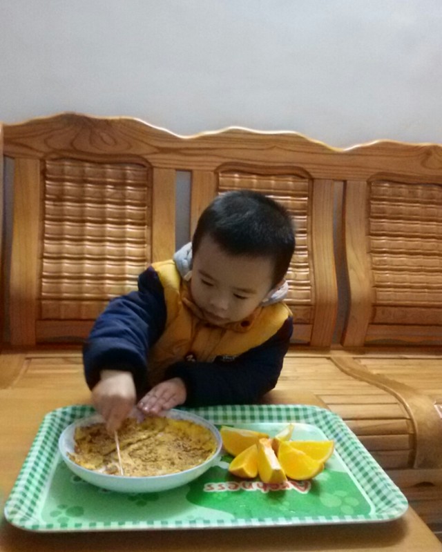 在我做第一锅煎饼的时候,小不点就自己在消毒碗柜里找了一个切月饼用的刀出来,然后嘟嚷着用它来切煎饼。当他看到我把刚把煎好的煎饼端出来后,他不知道有多么高兴,然后就开始用刀来切煎饼了。看到他玩得正认真,于是我就回厨房继续做第二锅煎饼。因为这一锅的浆液不是很多,所以这一锅的煎饼摊得特别薄,而且颜色似乎比第一锅的做得好看,当然,味道也是比第一锅的好一点的了。虽然我是第一次做番茄鸡蛋红枣芝麻煎饼,但想不到做出来的煎饼挺美味的,孩子和我都很喜欢吃,两盘的煎饼一下子被我们母子俩吃光光了。 材料准备:面粉适量,大白菜适量,番茄一只,鸡蛋三只,红枣三只、炒熟的白芝麻适量,