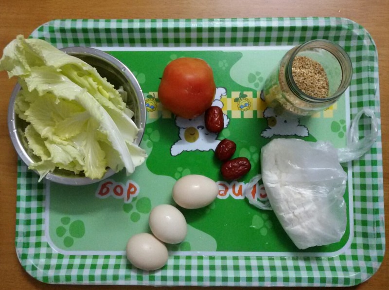 昨天晚上睡觉前,我就问小不点第二天早上是吃粥还是吃煎饼?然后小家伙就说要吃煎饼。看到冰箱里有从乡下带回来的土鸡蛋、番茄、大白菜和白芝麻,然后我就琢磨着用这些材料来做煎饼。 其实,我知道平时是很少人用番茄来做煎饼的,可我最喜欢用酸酸的番茄来做煎饼了,因为煎饼一般吃多了就会有点腻的感觉,但加了酸酸的番茄进去后,就不会有吃腻了的感觉了。想到小不点特别喜欢吃红枣,所以我就背着他加了三只红枣进去一起做煎饼,想不到人家吃第一口煎饼的时候就能吃出红枣的味道了。