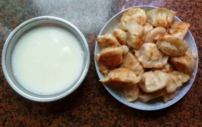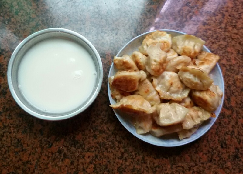 因为今天早上起得有点晚,所以早上的早饭我们就以胡萝卜玉米饺子为主,然后每人再配上一碗自己用豆浆机打的黄豆豆浆。这样的早餐对于我们来说也算是比较营养的了。