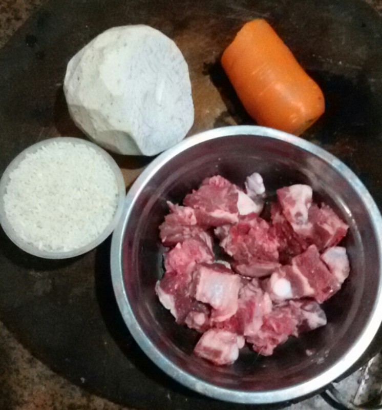 香芋排骨粥 从小到大,我都很喜欢吃排骨,想不到小不点也比较喜欢吃排骨,但他特别喜欢吃煲过的排骨。所以我有时早上的时候就会用排骨来煲粥,这样煲出来的粥可香可好吃了,怎么吃都不会腻。 一直以来我都不习惯专门煲肉粥,所以当我看到家里有什么蔬菜或粗粮时我就会用它来一起做粥的。这不,看到冰箱里还有半只香芋(有补中益气,健脾胃的功效),然后我就琢磨着做香芋排骨粥了。 材料准备:香芋半只(切小块,备用)、排骨半斤(斩块,备用)、大米150克(淘洗干净)、生姜三片、红枣6枚(去核)