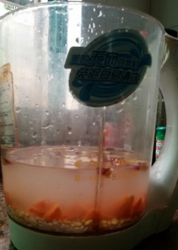 胡萝卜红枣小麦米糊 每次我想第二天早上和小不点一起起床时,我一般都会做小麦或燕麦米糊的,这样既简单营养又方便快捷。因为小麦是比较难煮软的,所以我得提前用清水浸泡,一般头一天晚上泡,第二天早上就可以用了。 看到冰箱里面还有昨天用剩的半根胡萝卜,所以我就琢磨着用它和小麦一起打米糊了。考虑到红枣健脾养胃补血,加上小不点又特别喜欢吃,所以我就加了几颗去了核的红枣进去一起打米糊。为此,就成了胡萝卜红枣小麦米糊了。 其实,这米糊的做法也非常简单,只要把所有的材料(胡萝卜去皮,切小块;红枣去核;取泡好的小麦和适量的大米洗净捞起)都放到豆浆机里,然后加入适量的花生油和盐就可选择“米糊”这个功能然后按下“启动键”即可,只要家里有豆浆机的都可以做这个米糊,一般二十分钟左右就能吃到热气腾腾的米糊了。