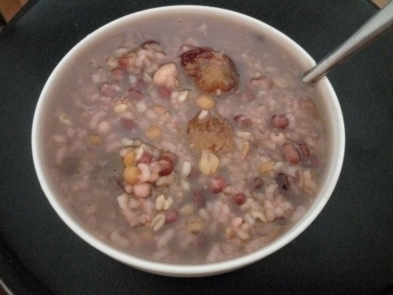 今天是腊八节,一大早老妈就打来了电话让我给她开门,说熬了粥给我喝。迷迷糊糊的我打开门,闻到了一股很香的味道,顿时食欲大开。老妈熬得腊八粥是我们家最爱喝的那种,放了很多食材,包括红豆、薏米、花生、大枣等,估计应该超过了8种食材。而且老妈还有加的冰糖,使得粥的味道是甜甜的,特别符合我家我和老爸爱吃甜食的习惯,所以说最了解我们的还是老妈啊。 中午给老公打电话问他吃过腊八粥了吗?老公说早晨和Aric一起在婆婆家吃了,不过和我家老妈的做法不同,婆婆家的腊八粥是咸味的,也放了不少食材,只是没放大枣而已。在我们这里有喝腊八粥的风俗,除了腊八粥,还有腊八蒜的制作和吃水饺,一般老妈都会在腊八节做点腊八蒜,做法也很简单,用醋泡制蒜,慢慢地,泡在醋中的蒜就会变绿,最后颜色会变得很好看,令人很有食欲。。