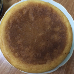 蛋糕上面那一层应该再烫一下,这样有点点黄黄的,可能看起来更好吃一些吧。就是底下那里有点太硬硬的感觉,不过趁热吃,还是挺不错的啊。宝宝后来就不怎么喜欢吃那硬硬的地方,我帮他吃了,其实宝宝对这个感觉一般般,倒是我啊,喜欢得不得了,就像满足了我的强烈的吃蛋糕的欲望一样,哈哈。比外面卖的蛋糕,还是有差别的哈,毕竟,自己做的,没有放泡打粉,没有含铅,吃着放心,安全,给宝宝吃也是,非常放心,要是有点葡萄干放进去,可能口感会更好一些吧。不过我找了一会儿,没找到,就算了。下次再做的时候,就再补上一些葡萄干 吧。