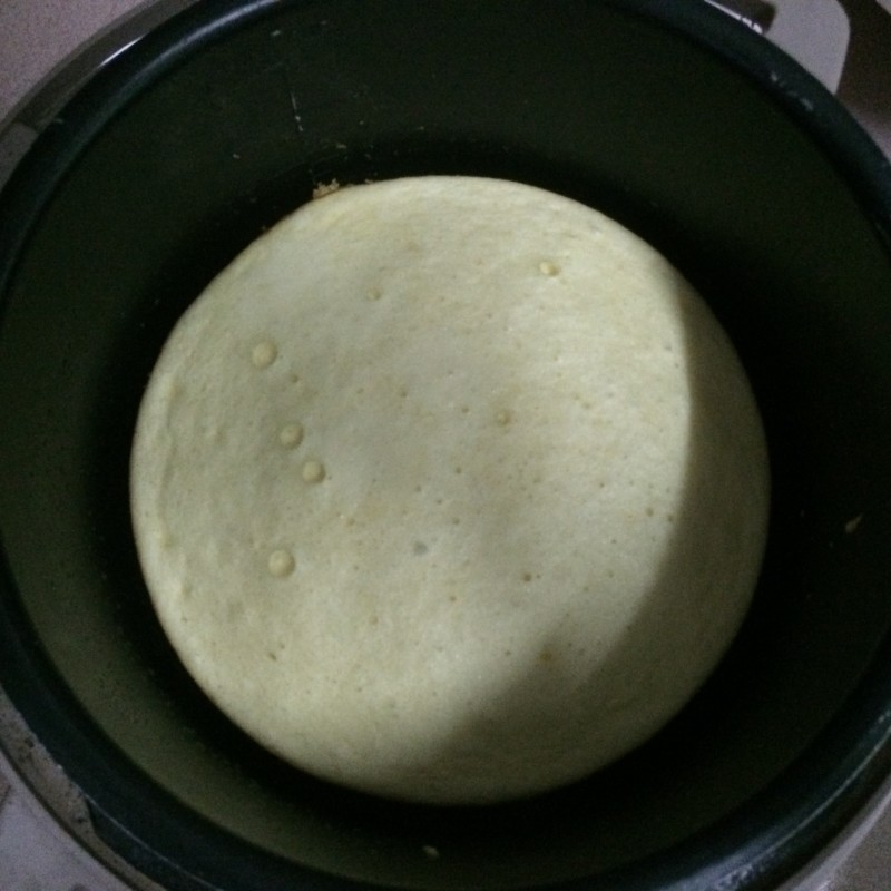 最后,先把电饭锅热几秒钟,再往锅里倒进一些油进去,铺平了,然后再把打好的面粉那些倒进去锅里,再按下煮蛋糕的健,我没想到,竟然要四十分钟这么久的。不过,正好我们可以煮中餐吃饭,吃完饭,蛋糕也就好了,就这样,这就是我们的处女作啦。哈哈,是老公的处女作!挺好吃的,但是放多一些糖就更好了。