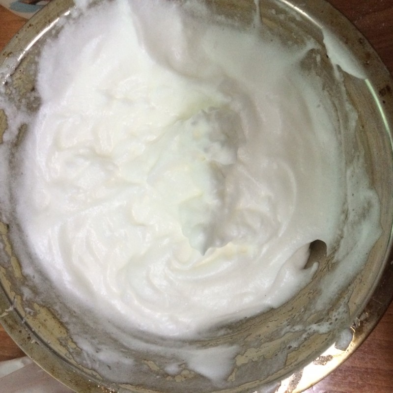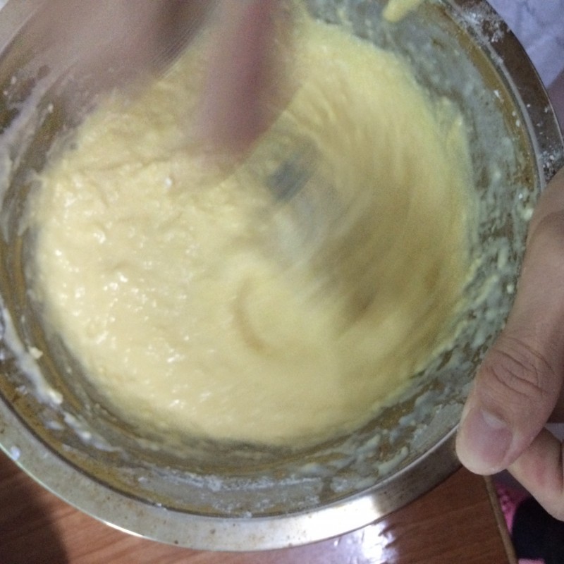 于是,我就一直看着老公在弄蛋糕,他在网上看到了一些教做蛋糕的,他找到的步骤好像比我找到的要更好一些啊,我一直觉得,自己找东西很不在行啊,每次找东西,都找不到POINT上!最开始的时候,我看老公,是把鸡蛋和蛋清分离,然后打了几个鸡蛋进去,单单蛋清一直用打蛋器在那里打着,可惜是手动的,打了20分钟,累死孩子他爹了。然后再打蛋黄,再在蛋糕里加面粉,加牛奶,加糖进去,一起打打打,后来再把打好的蛋清跟蛋黄放在一起,上下搅动着,还好像很有讲究一样,要从上往下弄,不能乱。反正我看不懂。