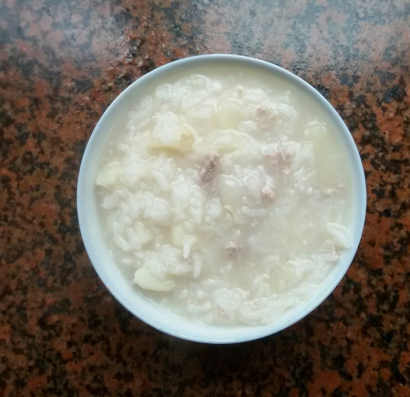单纯吃土豆肉饼可能会有点腻的感觉,所以建议吃的时候最好再配上一碗米粥一起吃。而我们家今天早上则配了马蹄瘦肉粥。虽然这马蹄瘦肉粥是简单了点,但马蹄甜甜的脆脆的,所以孩子特别喜欢吃。 虽然马蹄比较多泥,加上现在的天气又特别冷,洗马蹄的水当然也是冷冰冰的,可知道孩子很喜欢吃马蹄瘦肉粥,所以我还是想做这个粥给他吃。好不容易削好马蹄后,我就把它们放在水龙头多冲洗几次,然后切小块,待米粥煮开以后就直接把马蹄块放到锅里,然后煮十五分钟后马蹄就熟了,然后再加入剁好的调好味的瘦肉末再煮五分钟即可关火食用。