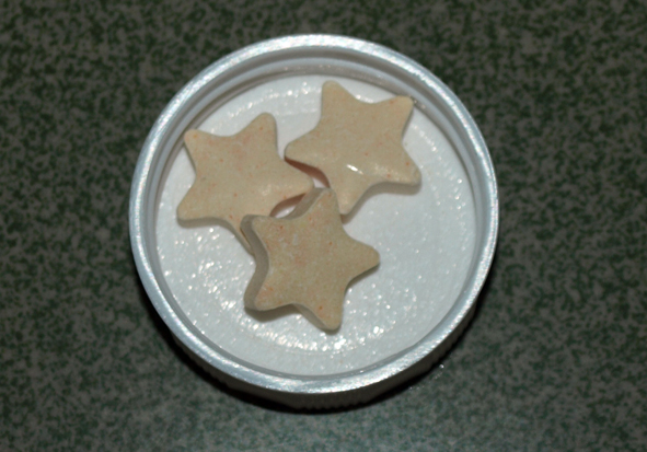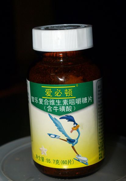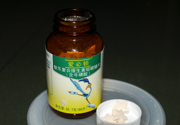 我是吃了一下,味道是酸酸甜甜的。蛮符合小孩子的胃口啊!她怎么就不吃了!郁闷啊 !维生素是五角星的造型,很可爱呀! ![]()