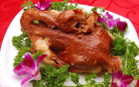 烧鸡,类似烤鸡,当然和烧肉一样也是会先用料卤一下,这样可以入味儿,其肉鲜美,而且肥而不腻,烂而不散哦!