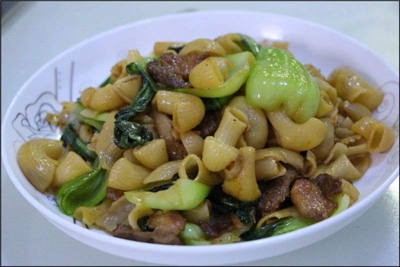 这是我在超市买的意大利通心粉,和江西的通心粉颜色和味道上有区别。早饭比较简单,通心粉提前用沸水煮大概10分钟左右,然后捞出晾干。接着油锅加热,先炒肉,放入酱油,再放入油菜翻炒至八九成熟,最后加入通心粉继续翻炒,需要注意的是通心粉容易粘锅,可以适当的加一点水。最后加入调料即可,闻着真是好香啊,估计和记忆中的有所区别,但是这完全可以替代的,好怀念。 等Aric洗漱好以后上桌吃饭还蛮奇怪这是什么呢,不过听妈妈忽悠了好半天,还没吃就感觉应该会非常好吃。再说小家伙可是个绿色青菜控,对于加了油菜来炒的通心粉兴趣十足。果然吃起来味道很不错哦,给妈妈点了个赞,说以后可以经常做。可惜老公不喜欢这个口感,原本他是打算买意大利面来做的,最后被我换成了通心粉。嘻嘻,下次给老公展示的机会吧,这次我得好好品尝通心粉了。 ![]() ![]() ![]()
