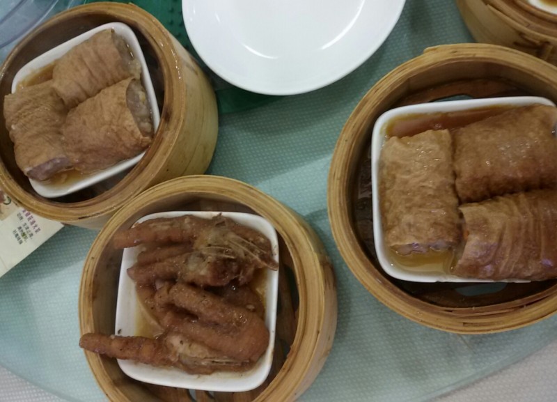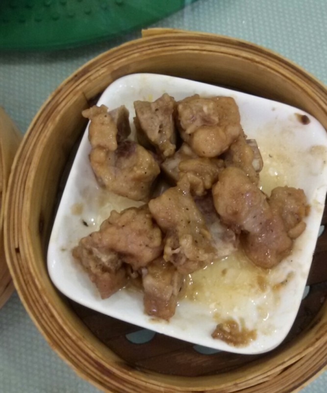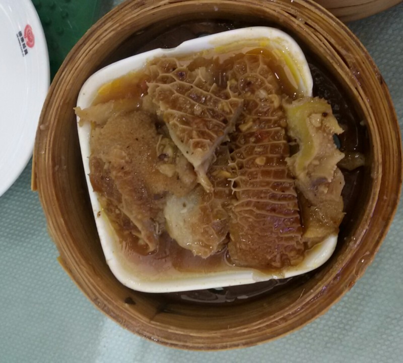 考虑到春节期间大家都吃了不少上火的食物,所以我们就点了罗汉果菊花茶。上茶的时候,小不点发现餐桌上多了一包冰糖,然后就嚷嚷着吃冰糖。然后宝爸就往小不点的杯子里加了一小块冰糖,其余的那些冰糖就全倒入茶壶里了。想不到加入了冰糖以后,这个罗汉果菊花茶比平时好喝多了,大家都喝了不少呢。 这个是清蒸排骨,里面还有香喷喷的吸收了排骨精华的香芋块呢。细心的宝爸知道小家伙不太喜欢吃排骨,所以他就专门挑香芋块给他吃了。其实,这排骨还蛮新鲜的,吃起来很嫩很滑的感觉,比我平时做的好吃一些呢。 这个是金钱肚,其实就是牛肚子而已。我觉得味道一般般,不适合孩子吃,因为它有点韧韧的,得嚼很久才能吞下去。 这个是凤爪,宝爸每次喝茶的时候基本上都会点的一道美食。我觉得这次的凤爪辣椒太多了,不太合我的口味,我还是觉得上次在碧桂园凤凰酒店的百合酱凤爪比较好吃。