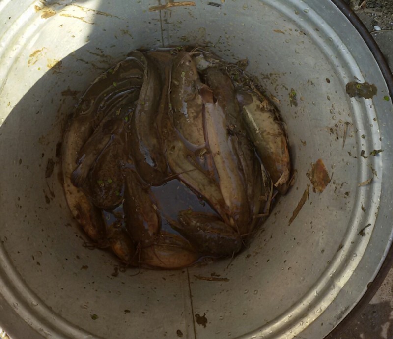 我本以为是豆腐煮豆腐,想不到第二天早上听堂哥们说要用本地塘虱鱼来酿豆腐。早饭过后,我就见堂哥们和老爸等人拿着捕鱼的工具往大伯父养的鱼塘那里去了。因为小不点从未见过别人捕捉塘虱鱼,所以我就带着他去凑热闹了。 虽然年初五那天的天气不是很冷,但大堂哥不穿水裤就直接到鱼塘里捕捉塘虱鱼,我看着都觉得冷了,所以我就打算待会他们捕完鱼后一定要煮生姜红糖水给他们喝(驱寒)。我和小不点来到鱼塘边待了不到十分钟,就看到堂哥两兄弟捕到了一些塘虱鱼。它们看上去个头虽然不是很大,但却活蹦活跳的,然后老爸就赶紧把鱼网里的鱼都捉到水桶里放着。捕捉了几网鱼后,我们就回家准备杀鱼做豆腐了……