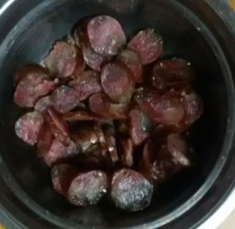 知道原因后,我们在吃腊肠之前就先在上面把小花椒弄出来,然后再吃腊肠,这样我们就能吃到香喷喷的腊肠了。虽然这样做会比较麻烦,但我们也不想浪费,再说,这些拿掉花椒的腊肠确实好吃嘛。