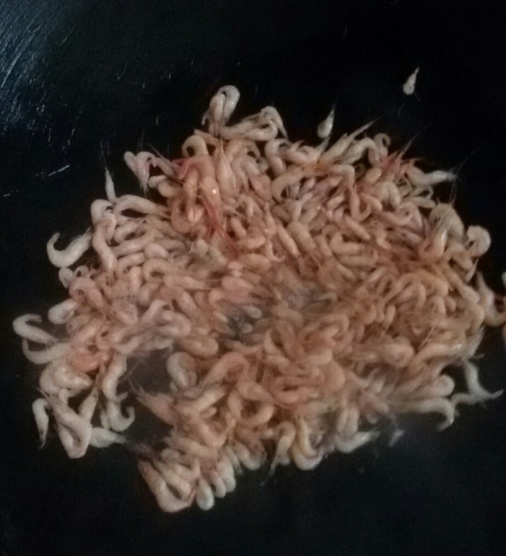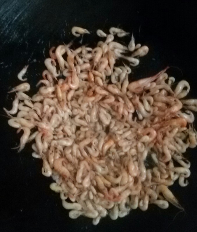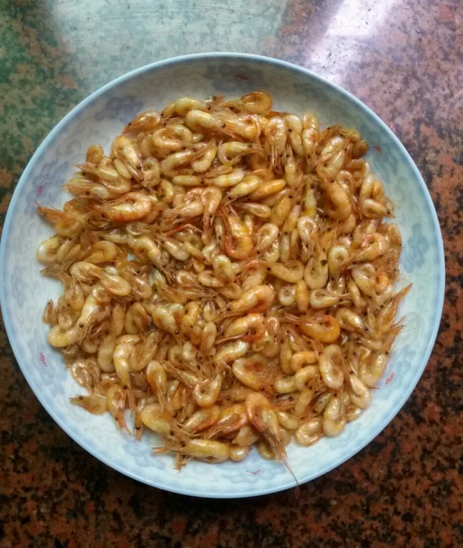 因为那里就只剩下一斤左右的小河虾了,所以那女人就提议我们一人一半,想到我们母子俩也吃不了那么多,加上自己从来没做过小河虾,所以我就爽快地答应了。 虽然我们中午时已经吃饱了,不用做饭了,但这些小河虾不能放太久,否则它们会死,所以我就先想把小河虾炒熟了,然后留着晚饭的时候再吃。因为听那女人说什么直接用花生油来炒就行了,连生姜也不用给,于是我就照着做了。想不到炒出来的小河虾竟然特别香特别好吃特别鲜美,而且虾皮虾头也很好吃,比我们平时吃的沙虾还要好吃呢,而且更补钙呢。
