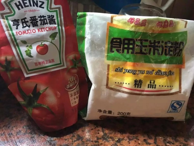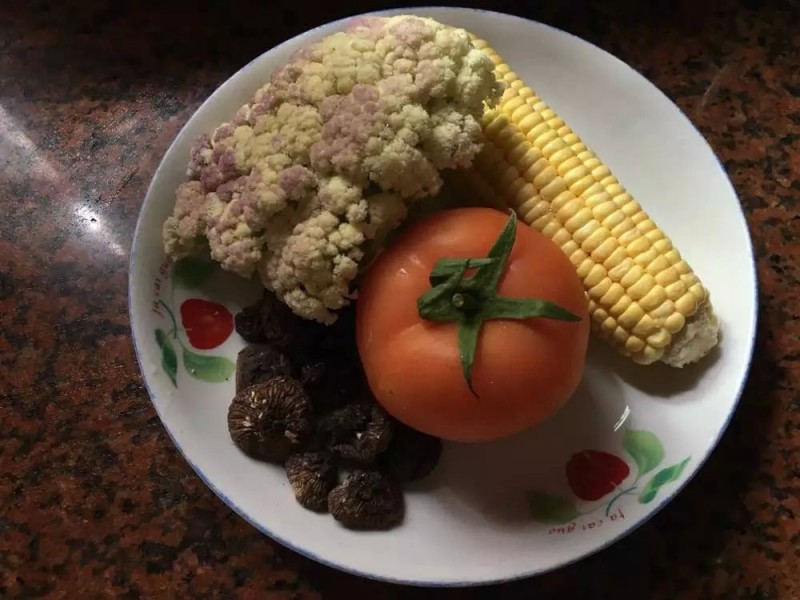 这边想起元宵节聚餐那道酸酸甜甜的“蔬菜羹”,因为不知道菜名,估且这么叫吧。虽然没得真传,吃过之后大概有了个印象,不如找些食材如法炮制一下试试吧,反正就我们俩吃饭,好不好吃都无所谓。蔬菜家里只有花椰菜了、西红柿和玉米了,我找了点干香菇、干贝、蚝干这样有点海鲜味,再加点油梭子,配料就是水淀粉和番茄酱啦。