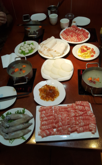 话说自打跟了老公在外面就餐的机会真的是好少好少,这不最近一外地哥们在这边跑业务,哈哈,我也就跟着有了口福喽!前几天来这边的时候哥们说是要请我们吃饭,我说:那哪儿行啊,来到我们的地盘,当然我们做东喽!这不我们三个人我在美团团了个四人份的火锅自助,哇,来了之后发现真的是好丰盛啊!