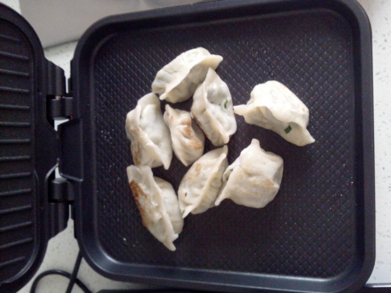 对于吃货的我那是不会拒绝的。这不今天早晨就拿了几个饺子煮了煮,然后用那个漂亮的煎烤机来做煎饺。 煎烤机里刷点油,把煮熟的饺子放上去,大概5分钟左右就好了,香喷喷的,脆脆的煎饺出炉了,方便又快捷。![]() ![]()