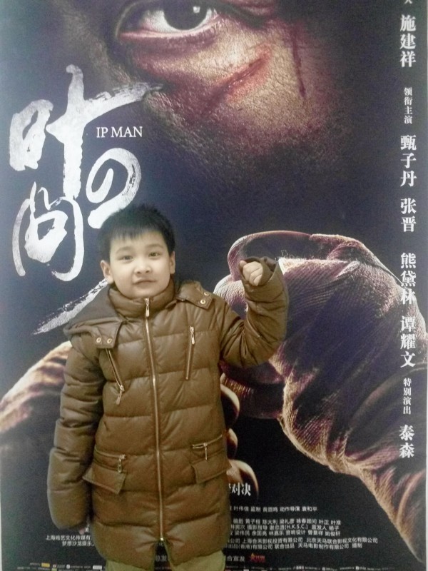 依然是甄子丹和熊黛林是主角,还有我超爱的张晋,是男配一号,饰演的也是咏春高手,他的性格让人又爱又恨。很善良,但是又很要求完美,总想超过所有人,因此这部电影的最后就是张晋和甄子丹的一场咏春对决,非常精彩。而泰森饰演的一个老板,操控着黑拳市场,也是一个高手哦,他和甄子丹的那场对决,我感觉和与张晋的对打有着很大的区别,但是很有强势的感觉。谭耀文是个很2的配角,特别搞笑,怎么说他呢,虽然是泰森的手下,但是却总把自己当英雄,算是个很傻的街头霸王吧。 在这一部中,熊黛林饰演的叶问妻子也因为癌症而去世了,我特别感动叶问为了她而做的改变。这与前两部有着很大的不同,这部主要讲了情义。在视为生命的武术和夫人之间,选择了夫人,栓释了生命的意义。在最后张晋与甄子丹的一战,虽然两人隔墙,她只是靠听,他在与对手打,但是两个的心是连在一起的,彼此知道对方在互相鼓励,这种浓情蜜意已超越了生死,表现了影片中的中华武术与情感同在。Aric看完电影后特别爱耍拳,说咏春拳很厉害,也想学武术。额,貌似我们周边没有这种武术学校,太可惜了,其实我觉得男孩学学挺不错的,强身健体,也不会容易被欺负。 ![]() 手机没拍清楚,而且Aric还不让开闪光灯,凑合着看吧。 ![]() 看我们包场的影院,这感觉不要太爽啊! ![]() ![]() 还有饰演李小龙的陈国坤呢,人家教的是交际舞,很有范儿。 ![]() 熊黛林的各种美,真的很漂亮哦。 ![]() 帅气的张晋,好男人,好老公,我特别喜欢娘娘,爱屋及乌。 ![]() ![]() ![]() ![]() ![]() 男孩都有点“暴力基因”?反正Aric看完了叶问后就特别喜欢咏春拳了,和爸爸打的那叫一个不亦乐乎啊,可惜小家伙总是输。