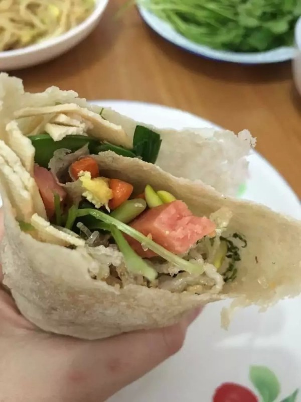 这个饼子里面东西好多啊!看着很好吃哦(´-ω-`)