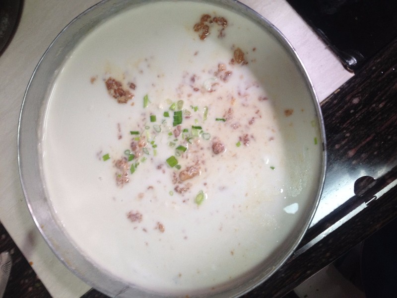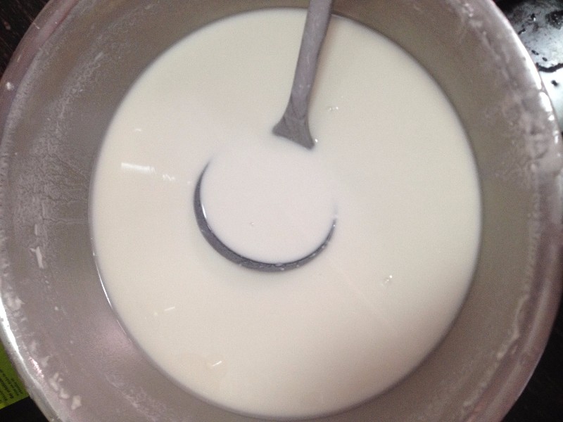 上周末,天气阴阴沉沉的,还下雨,所以自然更想吃热乎乎的卷筒粉啦~一不作二不休,立马蹭蹭蹭的到厨房开始动工。因为在这没办法找到碾米机磨米浆,所以只能拿出之前在超市买的粘米粉和面粉,和在一起调米浆。比例么,按照自己个人喜好便好。(PS:家乡的卷筒粉是用大米经过几小时的浸泡充分吸收水分之后,去专门的碾米厂碾成米浆之后再加水冲调而成。这样做出来的卷筒粉韧性会更好也更好吃)冲调后的米浆是这样的~DUANG~DUANG~DUANG~看图啦~