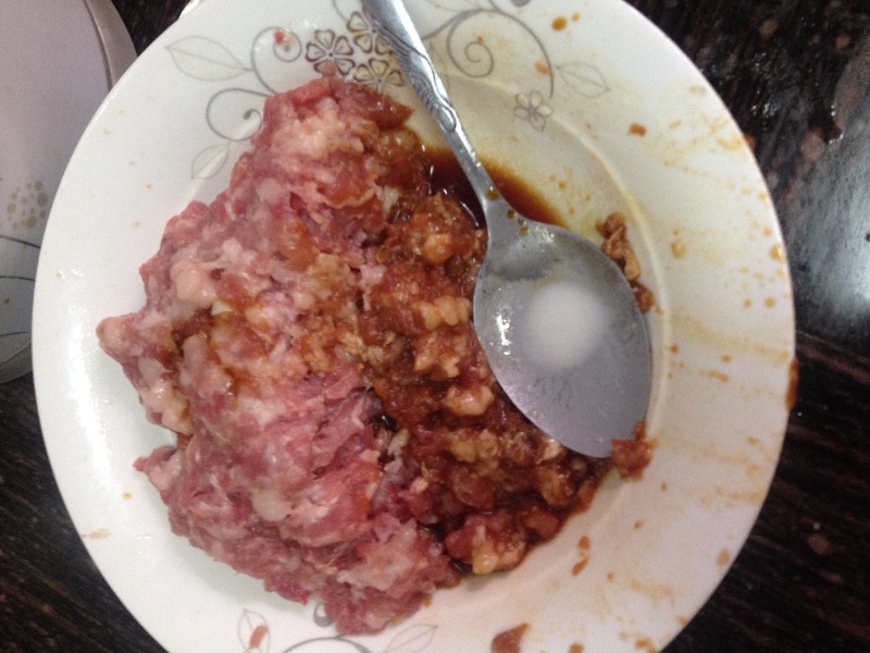 (这个是我腌制的肉糜,如果想更入味的话,可以在研制的时候放些鸡精料酒一起腌制。不放也没太大影响,因为后面做好还要有酱汁浇在一起吃的)