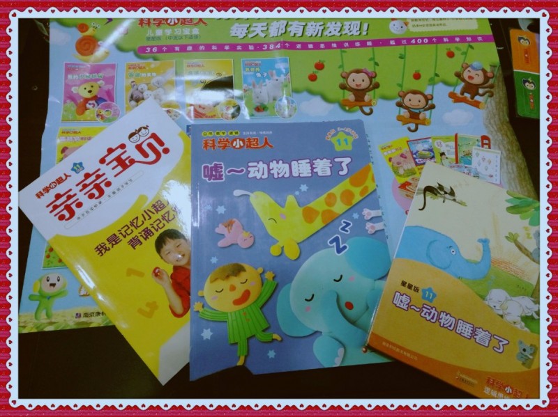 这一期星星版的科学小超人的产品内容很丰富,有科学读本立体书《嘘-动物睡着了》以及书的导读CD、亲亲宝贝(记忆背诵类)、科学实验盒(玩具车加组装工具《我是拆装小高手》)、科学实验DVD、逻辑游戏卡(这个类似逻辑狗,是孩子思维升级的系统训练学具)。