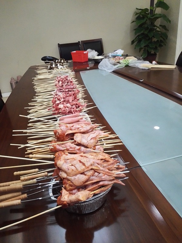 前一段时间公司组织 进行了烧烤活动,提前一天去看了肉,并且买了很多肉,有羊肉、牛肉、鸡肉,还有烤肠,下午开始烧烤,中午的时候我们就去采购食材,除了肉肉,当然还有素菜了,还有几个惊喜的食物,最后会来做介绍。准备把食材来串一下,做一些准备工作。