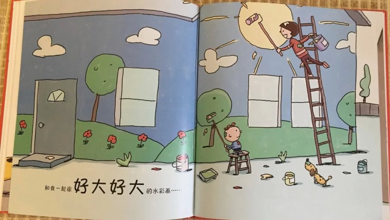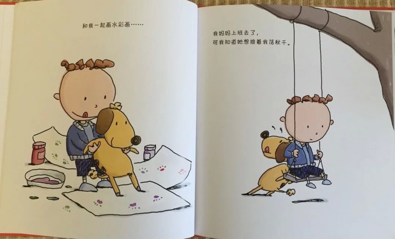![]() 这本书里描述的是一个小男孩和一个职场妈妈之间温馨的暖爱故事。故事很简单,文字很少,主要以大幅的图画呈现。这本书的画风我很喜欢,色调清淡素雅又温情暖暖,看似简单的大线条居然勾勒出一幅幅内容丰富、立体感超强的美图。 ![]() ![]() ![]() 虽然一直都听说绘画就是由简单的直线和曲线、简单的方形和圆形组成的,但是看了这本绘本才真正明白这句话。原来绘画并没有想象中那么深奥。关注亲子阅读的家长们肯定都懂的绘本对于孩子的绘画和艺术想象力的熏陶功能有多大,这样的绘本,先不说主题内容,单单是插画就足够值得推荐的。所以说,一般大精装,插画丰富的绘本价格一般不菲,都是有原因的。 再来看看这本书的内容,故事简单温馨又不失夸张幽默。在妈妈上班后,小男孩和小狗狗一起玩跟妈妈平时玩的各种游戏和活动。小男孩时而扮演妈妈的角色,像平时妈妈照顾他那样照顾他的小狗,真是可爱极了。抱着小狗看妈妈的照片,和小狗一起看书、一起玩游戏、一起画蜡笔画、一起骑车、一起滑旱冰、一起画油彩.....就这样,在和小狗一起重温跟妈妈一起时的各种活动的过程中,时间愉快地飞逝着。妈妈都已经下班回来了!画面上母子两个大喊着跑向对方的情景就好像已经分别了数年。 一回到家,妈妈就和小男孩玩起了各种游戏,妈妈的疯狂简直都让小家伙受不了了呢。巴不得让妈妈赶紧上班去了,哈哈。图书的第一页和最后一页,几乎一模一样的场景,所不同的是妈妈和儿子的衣服还有小男孩的表情。细心点就可以看出妈妈和儿子每次都穿的亲子装呢!从第一页和妈妈道别时的不舍和难过,到最后一页时挥手告别妈妈时候的开心和放松,对比可真是明显啊! ![]() ![]() 妈妈上班去了,但是孩子却深刻地知道妈妈是深爱自己的。而当妈妈在家的时候,却因为太爱自己了,简直把自己都当成玩具了,差点被缠在树上下不来了,想想都有点胆战心惊啊!所以,还是短暂分离一下的好啊!哈哈。 本作品未经作者许可不得转载,转载请征求作者意见。擅自转载使用,将保留追究其法律责任的权利! 个性签名